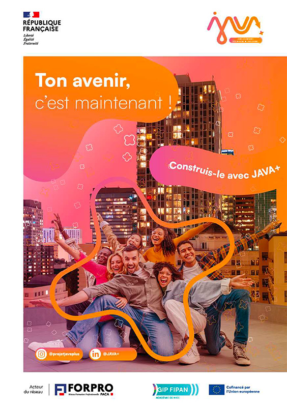 Co-financé par le Fonds Social Européen +, le projet JAVA+ Jeunes Accompagnés Vers un Avenir Plus professionnel, vise à favoriser l’accès à la formation et à l’emploi durable des jeunes de 16 à 29 ans, dans les Alpes-Maritimes et le Var.